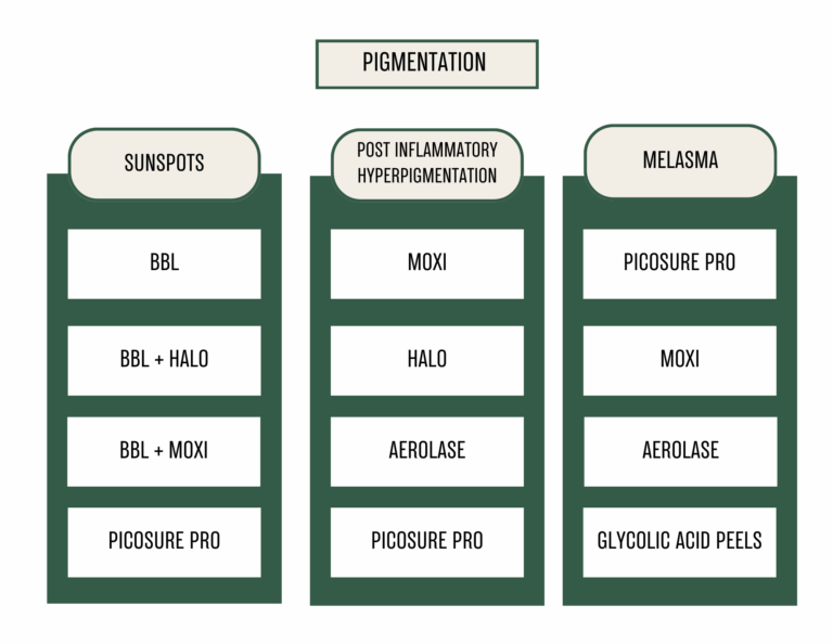 The PicoSure Pro is our first-line laser treatment for melasma and remains the only laser with an official FDA indication for melasma treatment. Additional technologies, including Aerolase and MOXI, can also be highly effective when carefully selected for the appropriate patient and pigmentation type.