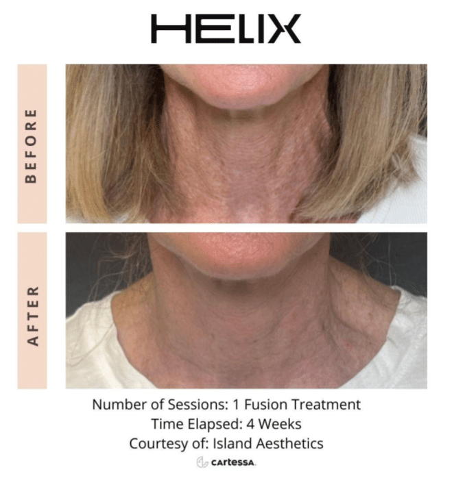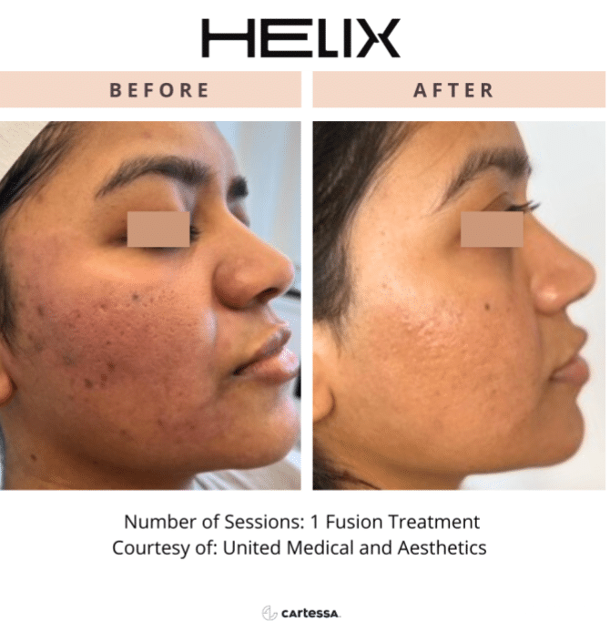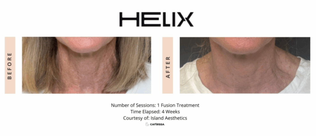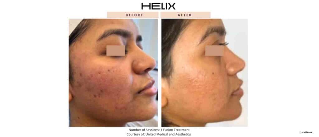 What truly sets the HELIX apart is its ability to combine both ablative and non-ablative energy in a single session. This Fusion Treatment offers comprehensive skin resurfacing and rejuvenation, achieving transformative results in texture, tone, and firmness—with less downtime than traditional aggressive CO₂ treatments.